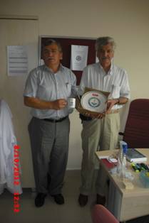Doç. Dr. Süleyman KELEŞ’E Sakarya Aydınlar Ocağı Başkanı Yrd. Doç. Dr. Mustafa Kemal CERRAHOĞLU tarafından derneğin amblemini simgeleyen tabak ve kupa hediye ederek her iki akademisyenin Sakarya Üniversitesi Tıp Fakültesini tercih etmeleri Sakarya için bir kazanç olduğunu ifade eden Başkan CERRAHOĞLU Sakarya Aydınlar Ocağı adına kendilerine teşekkür ederek çalışmalarında başarılar diledi.